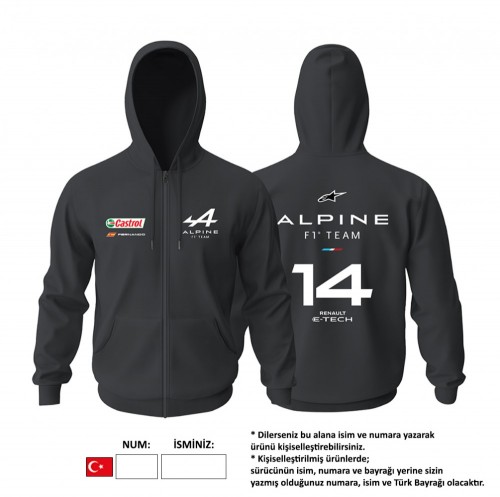 Alpine F1 Team: Black Crew Edition 2023 Fermuarlı Hoodie